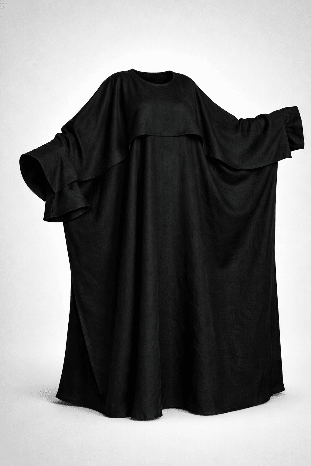 Abaya N°3 noire lin L’alliée sophistiquée des mamans actives