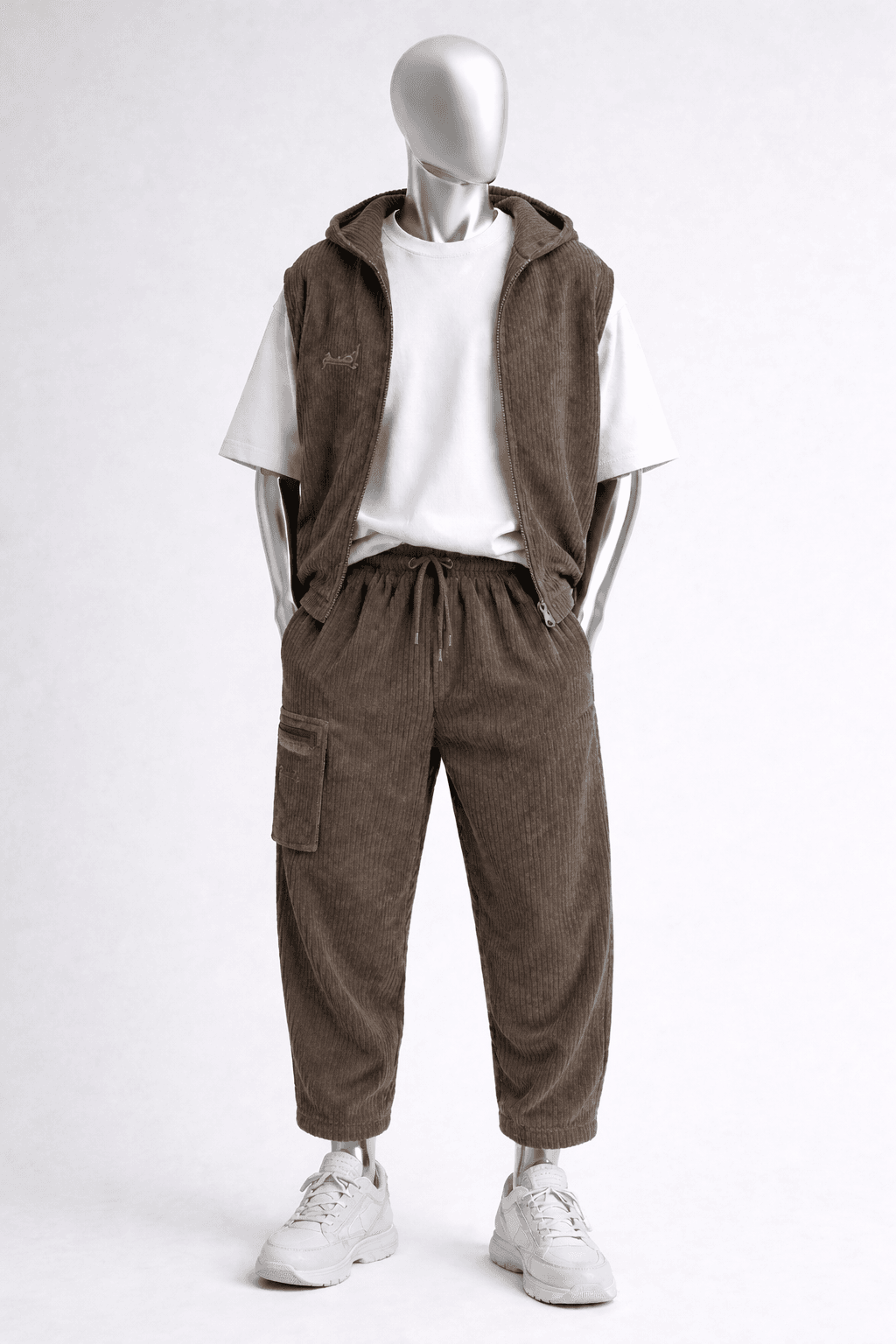 Gilet sans manches homme velours côtelé taupe haut de gamme