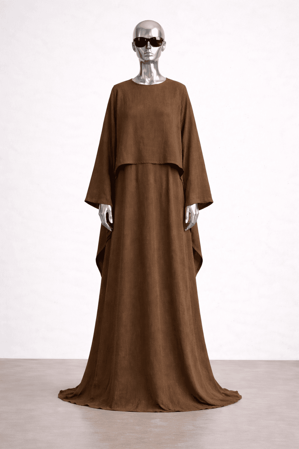 Tu n’achètes pas juste un ensemble. Tu as une robe longue fluide que tu peux porter seule, facile pour le quotidien. Tu as aussi un haut asymétrique qui vient structurer ta tenue quand tu veux un rendu plus travaillé.